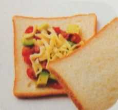 材料( 1 人分):アボカド 1/4 個、プチトマト2個、食パン( 10 枚切り) 2 枚、バター少々、ピザ用チーズ 15 g、