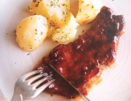 お皿に盛り、付け合わせのジャガ・バセリを添える。