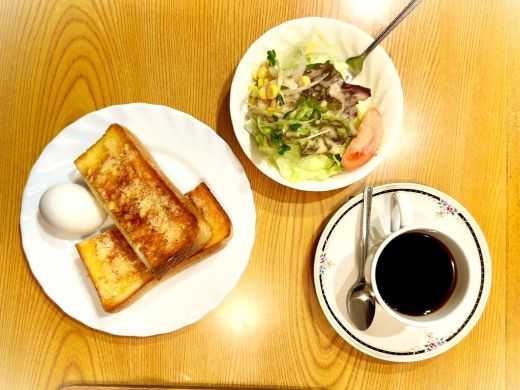 ホットコーヒー、プチサラダ、トースト、ゆで卵‣……いただきます!