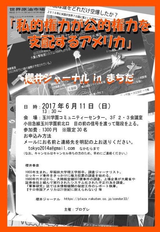 6月11日に玉川学園コミュニティーセンターで「私的権力が公的権力を支配するアメリカ」について話をします。そうした仕組みをフランクリン・ルーズベルトはファシズムだと定義しました。TPP(環太平洋連携協定)、TTIP(環大西洋貿易投資協定)、TiSA(新サービス貿易協定)はそれをさらに進めるものでした。その目論見は消えないでしょう。侵略戦争や監視/治安体制の強化は私的権力のために行われています。興味のある方は主催者まで連絡してください:tokyo2014a@gmail.com