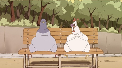 ゆうばり国際ファンタスティック映画祭のインターナショナル・ショートフィルム・ショウケースプログラム3[ファンタジー]部門で韓国のアニメーション『鳩は飛ばない』など鑑賞。『鳩は飛ばない/Doves Do Not Fly』は...太って太って...空が飛べない鳩(ピドゥルギ)たち。むじゃきな小鳩だったドゥルギもでっぷり太ってカラスを蹴散らしゴミを荒らす、目つきの悪い鳩になった。ある日卵を産めない雌鶏コッコがドゥルギを何度も追いかけてくる。しつこい...と思っていたが...ブラックユーモアあふれる作品で...欧米の観客にも非常にウケていた作品。私も笑いながら観ていました。笑って笑って最後はしんみり。ちょっとチャップリンの映画みたいな悲哀も。そして...2011年韓国でヒットした長編アニメ『庭を出ためんどり』を対比して思い浮かべたりも。『庭を出ためんどり』は卵を産むだけの生活から、その枠に嵌められた人生から逃れようとするめんどりイプサック/Leafie(声:ムン・ソリ)が登場するが『鳩は飛ばない』は卵を産めない、いわば不妊症のめんどりコッコが登場して対照的。コッコは卵を産む生活がしたいのにそれができない。一方イプサックは卵を産むだけの生活にうんざりしてそこから逃れようとする...それぞれに生きる意味や生きがいを探す、自分探しが含まれているところは共通。めんどりとしての役割を果たせないコッコは(一面)おんどりのように生を全うしようとする。皮肉な、でも現代社会に通じる切実でリアルな悩みも含んでいる。たしかに自由に生きる自由、敷かれたレール通りには生きない自由もあれば...与えられた役割通り、レールに沿って生きることを選択する自由もあるかも。それが没個性で無味乾燥で時に哀しい人生であるにせよ、それしか選択できない、切実な場合もあるのかも...と、めんどりの人生を現代社会の人間の生の隠喩としていろいろ哲学的にも考えてしまう。選択する自由、飛び出す自由が『庭を出ためんどり』なら飛び出さない自由、拘束や滅私奉公に身分相応に甘んじる自由が『鳩は飛ばない』に描かれる「もうひとつの」自由かも...生き方、進路に悩んだ末に導き出された結論がそうなる場合、冒険のない後者になってしまう場合もあるよね...と現代社会の一面も感じた。でも、冒険したくないのに、与えられた役割通りに単純に生きたいだけなのに不妊症だからそれすらできなかったコッコはちょっと切ない...。『庭を出ためんどり』のめんどりと『鳩は飛ばない』のめんどりは人生の裏表、のような気もしたし、回転木馬のように人生に交互に現れてくる風景それぞれのようにも思えた。ある時はイプサックである時はコッコ...絵/描写もちょっと独特。鳩もめんどりも鳥たちの脚は描かれない。鳥たちの胴体とつまさきを結ぶ脚が描かれず透明で背景を透かす描写が不思議な気がした。ユン・イグォン監督の初監督作品。その前は...2009年のオム・テウン主演映画『チャウ/人喰猪、公民館襲撃す!』のストーリーボード担当だったそう。興味深いです^^2011年の第7回インディアニフェスト/Indie Anifestでスペシャルメンション/Special Mentionを受賞。to be continued...!?buzz KOREAClick...にほんブログ村 韓国映画にほんブログ村 映画にほんブログ村 映画評論・レビューにほんブログ村 韓国情報にほんブログ村 K-POPにほんブログ村Copyright 2003-2025 Dalnara, confuoco. All rights reserved.本ブログ、サイトの全部或いは一部を引用、言及する際は著作権法に基づき出典(ブログ名とURL)を明記してください。無断で本ブログ、サイトの全部あるいは一部、表現や情報、意見、解釈、考察、解説ロジックや発想(アイデア)・視点(着眼点)、写真・画像等もコピー・利用・流用・盗用することは禁止します。剽窃厳禁。悪質なキュレーション Curation 型剽窃、つまみ食い剽窃もお断り。複製のみならず、ベース下敷きにし、語尾や文体などを変えた剽窃、リライト、切り刻んで翻案等も著作権侵害です。