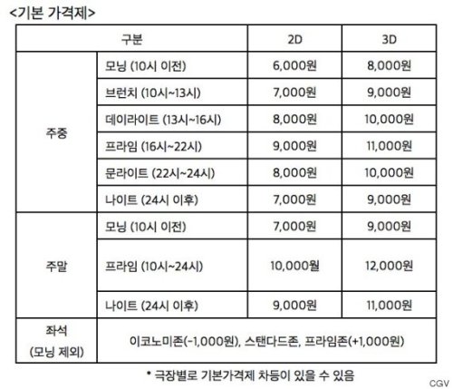 ティファニーで朝食を...ならぬチョジョハリンで映画を...(2009年)。当時、映画館の早朝割引 조조할인(=チョジョハリン)は10時~の回も適用されてW5,000、週末のデート時間はW8,000深夜はW6,000 と...時間帯によって料金が変わるのも日本にはないサービスで魅力的だった。3月から韓国の大手映画チェーンCJEのCGVはさらに料金体系をきめ細かく細分化。平日はモーニング・ブランチ・デイライト・プライム・ムーンライト・ナイト(デイライトとムーンライト、ブランチとナイトは同料金)週末はモーニング・プライム・ナイトでそれぞれ概ね1,000Wずつ差異のある料金体系に。(週末は1,000W~3,000Wの価格差)3Dは2Dにプラス2,000W(日本より小幅上乗せ!?でうらやましい~)。見上げる最前列席はW1,000 割引もあるそう(モーニング以外)!ロッテシネマも4月から平日、週末とも早朝・一般・プライム・深夜と分けた料金体系に。見上げる最前列席のW1,000 割引(早朝は除外)も。映画館側は週末の書き入れ時に安定した収入を確保できそう...観客も、もしかしたらニッチな時間帯を選好して観に来るかも、ニッチな需要を掘り起こせるかも...韓国は(2013年当時)3%の映画発展基金が映画料金に含まれていたり...クラウド・ファンディングが始まるずっと前に一般から投資・製作費を募るしくみもあったり...マーケティングまわりも興味深い。to be continued...!?buzz KOREAClick...にほんブログ村 韓国映画にほんブログ村 映画にほんブログ村 映画評論・レビューにほんブログ村 韓国情報にほんブログ村 K-POPにほんブログ村Copyright 2003-2025 Dalnara, confuoco. All rights reserved.本ブログ、サイトの全部或いは一部を引用、言及する際は著作権法に基づき出典(ブログ名とURL)を明記してください。無断で本ブログ、サイトの全部あるいは一部、表現や情報、意見、解釈、考察、解説ロジックや発想(アイデア)・視点(着眼点)、写真・画像等もコピー・利用・流用・盗用することは禁止します。剽窃厳禁。悪質なキュレーション Curation 型剽窃、つまみ食い剽窃もお断り。複製のみならず、ベース下敷きにし、語尾や文体などを変えた剽窃、リライト、切り刻んで翻案等も著作権侵害です。