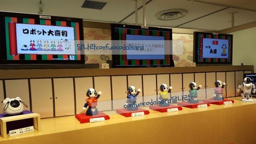 クラウド対応型インタラクション制御技術「R-env:連舞TM」と知的メディア相乗化技術「SMILE」にNTTドコモの自然対話プラットフォーム「対談雑話」を組み合わせてロボットによる大喜利=名付けて「大機利」。司会のOHaNASが出すお題に、五体のSotaたち{NT亭から九里、NT亭真心、NT亭ゑ礫(エレキ)、NT亭炉井戸(ロイド)、NT亭AI吉}がボケる。判定はPALRO。声がみな違うよう。顔は同じだけれど...声の愛らしさや心地よさで好みや評価(カワイイ!)を判断もしてしまった。次に来るのが話す内容。ロボットが主人公のドラマは?のお題に「半ロボ直樹」「下町ロボット」(←そのまんま!)など...大喜利(大機利)はロボット4人対AI一人の対決でもあるが...AIの回答は時々、ちょっとだけロボットよりおもしろい時もあった。プログラミング結果としての回答よりもほんの少しedgyな...教えて!gooと連携して回答を選んでいたAI。おもしろかった/おもしろくないボタンが連打されていたからだろうか、ロボットたちの大喜利を「よかった」あるいは「もう少し」と評価する司会のOHaNASとの(?)連携がうまくいっていない、合っていないようだった。トレンドたまごでは時々韓国の先端技術も紹介されるが...あらゆるボタンをSmart化出来、SNSメッセンジャー(kakao talk)で制御できる指ロボット、「マイクロボット・プッシュ Microrobotpush(ナラン)」は複数連携も出来るそうで、ON/OFFを連携させる等並列的使い方(grid computer的な発展もあり!?)がなかなか興味深かった。IoTはやはり連携のスコープに現れる視点が興味深い。介護関連のロボットは介護のある特定の、一種類の作業に特化したものが衝撃的。排泄で濡れた衣類布団から水分を吸い上げ除去するなど...どのメーカーが何の分野(一応は本業と関連もする分野)のロボットの開発に注力しているかもなかなか興味深かった。住宅メーカーは介護ロボット、警備会社は介護ロボットの他ドローン Droneなどを開発して(オリンピックを視野に入れているかも)。将棋を指す「新電王手」も初めて見た。AI(Alpha GO)に比べるとビジュアルからしてレトロな感じ...「暮らしとロボット展」にて。高島屋の大きめな展覧会はタイトルに「暮らし」を入れる傾向もある...!?暮らしと美術と高島屋米朝アンドロイドを観た前後、その頃新宿高島屋にはバレンタインの時期に自律型アンドロイド(人間酷似型ロボット)「ミナミ」も展示されていた。最近はマツコロイドでおなじみの、大阪大学大学院基礎工学研究科システム創生専攻知能ロボット学研究室(石黒研究室)石黒浩教授によるもの(米朝アンドロイドも)。平田オリザとのコラボレーション、アンドロイド・ロボット演劇もいつか観てみたい。to be continued...!?buzz KOREAClick...にほんブログ村 韓国映画にほんブログ村 映画にほんブログ村 映画評論・レビューにほんブログ村 韓国情報にほんブログ村 K-POPにほんブログ村Copyright 2003-2025 Dalnara, confuoco. All rights reserved.本ブログ、サイトの全部或いは一部を引用、言及する際は著作権法に基づき出典(ブログ名とURL)を明記してください。無断で本ブログ、サイトの全部あるいは一部、表現や情報、意見、解釈、考察、解説ロジックや発想(アイデア)・視点(着眼点)、写真・画像等もコピー・利用・流用・盗用することは禁止します。剽窃厳禁。悪質なキュレーション Curation 型剽窃、つまみ食い剽窃もお断り。複製のみならず、ベース下敷きにし、語尾や文体などを変えた剽窃、リライト、切り刻んで翻案等も著作権侵害です。