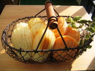 おいしいおまけです。ベータカロチンたっぷりのケーキ。意外としっとりおいしいです。簡単だし。 <にんじんケーキ> ホットケーキミックス1袋はちみつ大さじ2溶かしバター20~30g牛乳150cc卵1コにんじんの搾りカスまたはすりおろしたもの 1/2本分→ 全部混ぜて型に流しいれ、180度で13分やきました。*マドレーヌはにんじんを入れないでつくりました。ホットケーキ焼くより簡単で食べやすいです。