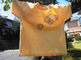 麻の布を丸くカットして、刺繍をあしらってみたり…。3さいの息子用に潮干狩りやGWに着せていこうと思います。最近、服の好みがはっきりしてきたから、着てくれるかな~。