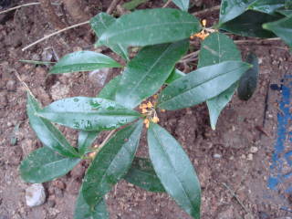 幼い頃から大好きなキンモクセイを植樹しました。しかも2本。^^しかも植樹なんて初めて。^^;植物オンチの私なのですが、この木だけは香りが大好きで、ほのかに香るこの時期は、一年で一番心が安らぐ季節です。一本はまだ花が1つしか咲いてないほどの幼木で、もう一本はそこそこの大きさです。肥料やら、花壇土やら買ってきたりしたのですが、穴掘りしてビックリ。粘土だらけで、掘れない事掘れない事。><力任せで掘り続け、途中「一本にしとけば良かった><」と思いつ、時間をかけて穴掘り完了。肥料や土を混ぜて敷き、その上に木を置いて、さらに土をかぶせ、最後に元の土を少しかぶせて終了。途中イブが穴掘りを邪魔・・・じゃなくて手伝ってくれました。(汗)念願かなってのMyキンモクセイ。香りに包まれてゆったりとした時間を過ごせそうです。今晩は「花見酒」ならぬ「香り酒」でもしようかな。(笑)