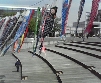 そうそう、ちびっこ広場で作った鯉のぼり