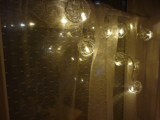先日3coinsでイルミネーションを買いましたワイヤーの球体の中にイルミinタイプ星形とツリー型もありました去年ニトリで初めてイルミを買ってとっても気にいって今年もと思い買いに行ったら今年は扱ってなかった・・そのニトリ品 何より気に入ったのが電池式!電源が近くになくてもいけるところが気にいりました自動OFF機能もあって夕方つけると夜中に消えるなのにもう扱ってないと知りがっかりふら~っと入った3coinsでタイプは違うけれど電池式でかわいいのを見つけてラッキー♪点灯した画像あーーーーなぜ明るいときに撮ったんだ・・夜 外から見ても可愛く光っていてとってもお気に入りなんですでも自動OFFではないのーでもね見つけました!たぶん去年入手したのはこんな感じ電池式のイルミ自動OFF機能があるかわからないけどさりげなく飾るにはとってもいいワイヤーなので置いていても存在感がなくさりげないさりげない何度も言ってると変な言葉だ・・さりげないクリスマスに向けてさりげなく演出中・・・にほんブログ村いつもご訪問いただきありがとうございます