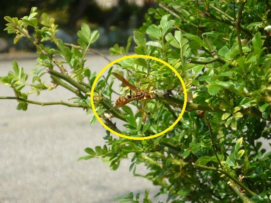 今の時期からバラの周りをぶんぶん飛び回る蜂