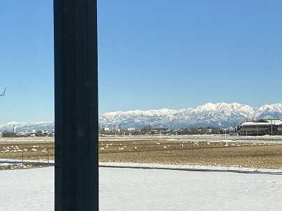 遠くに立山を望む場所のすぐそばに白鳥が飛来していて