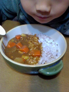 今日は息子とカレーライスを作りました 満足そうな息子 うちのカレーは中辛なので、 少し前までは アンパンマンカレーやポケモンカレー を食べていましたが、 もういいだろうと、同じカレーに少しリンゴのすりおろしや 隠し味のチョコレート を内緒で入れてみたところ 美味しくない と 食が進まず、 今日は、途中でお鍋を分けて、 息子用に甘口カレールーを使って、 2種類作ってみました 野菜も半分は息子が皮むきして、 自分でカットしました 出来上がりは大満足で、 いつも 食には 欲がなく、のんびりの息子が サラダもあっという間にたいらげ、 おかわりしてました 自分で作った感がとっても嬉しくって、 そして、主人と私には おいしいおいしい と何度も聞いていました そして、 今度も作るね と 普段いろいろ一緒には作りますが、 またまた 彼のスイッチが入ったようです 今は男の子もお料理ができないといけない時代ですね。 今やりたいと思うこの時期に たくさん教えていきたいなぁと思っています。 今度は何を作ろうかなぁ・・・・
