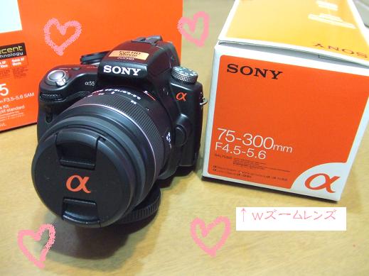 これ 買っちゃいました 今のカメラは、もう何年かなぁ・・・明日、息子の最後のクリスマス会があり、 かねてから一眼レフカメラが欲しいと思っていた私は、ついに買っちゃいましたしかも・・・wズームレンズも付けて… 付属のレンズでも50mmまで撮れるのに、Wズームレンズを使うとさらに300mmまで撮れちゃいます50mmというと、自分の位置から約10m先のものが画質も良く大きく撮れるくらいです想像できますでしょうか? 明日はたぶん標準で十分かと思いますが、行楽での風景や、ディズニーランド等のショーにはWズームレンズが大活躍しそうですね ドキドキワクワク息子が毎日頑張ってきた姿をぜひ、このカメラにおさめてきたいと思います 少しご説明すると、兼ねてから断固としてこだわってきたsonyさんは、メモリースティックからメモリースティックと、SDカード両方使用できるようにしたそうですそして、私の気に入ったひとつにこの部分が回転しますクルッとひと回しすればカメラを両手で高く持ったまま画面をみてパチリッ ワンちゃんや、子供の目線で撮影するときに自分が寝転んだりしなくっても下において画面をクルッパチリッ 最高の写真がとれます・・・ ってまだ想像の範囲なんですけれどね・・・ お財布はさみしくなりましたがとってもプラスな買い物ができたかな明日のためにこれから勉強しなくては では また聞いてくださいね。ありがとうございまぁす