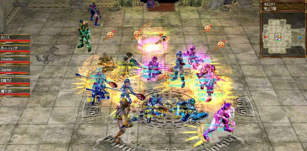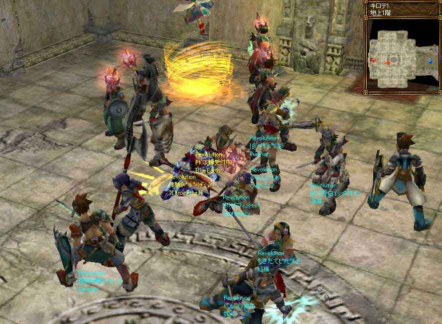 ぼーえい^^昨日の防衛見事成功しました^^防衛後の記念写真ですそして防衛中ですCPの前の通路でソーサレスさん達が人を殺してくれるのでほとんどCP周りにはきませんでした♪CPまわりにきてもあんふぃすさんの毒、魔天劉さんのライジング、おりえさんの高速攻撃によりすぐに相手は死んでいきました^^まさに瞬殺でしたとまぁ防衛成功でいろいろ僕自身も成長したんですがもっと成長したことがあります僕は現在 Revolution ギルドさんに所属しているんがこれが防衛前そして・・・防衛後僕は僕は僕は正常です さんのギルド!!!ちょっとビックリしたりうれしかったりした一日でした