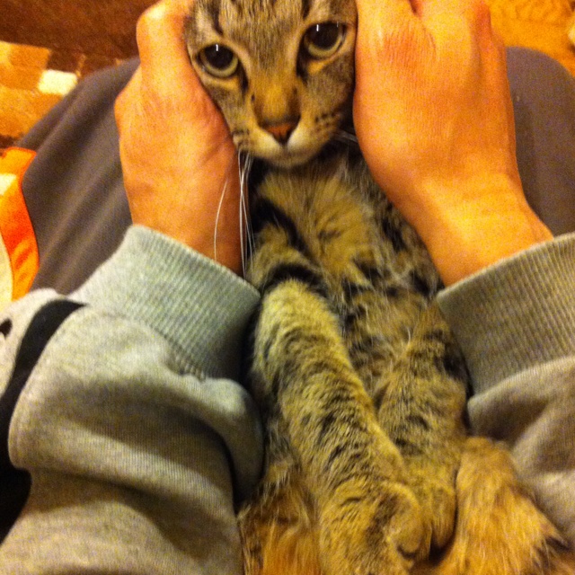 おうちを走り回ってたら、パパにつかまっちまったー(^ω^)ふぇ~ん