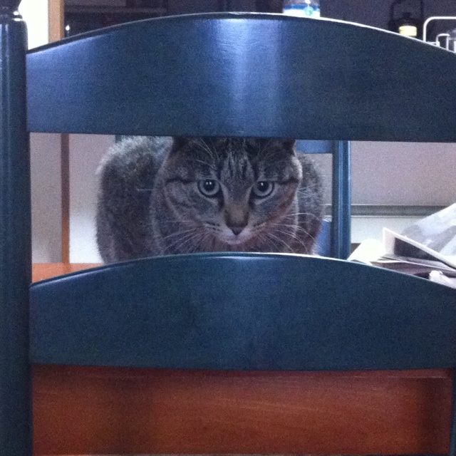テーブルの上からジッと見つめる瞳。 床ではマロンさんがゴロンゴロンしています。 椅子のすき間から覗いてるのがおかしいー。 ちびたん、悩める一歳児です…