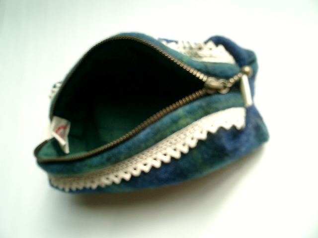 表生地と裏生地と、ファスナー,同時に三枚挿み付け一気縫いです。手縫い針は、一切、一度も使わずに、全てミシンワークで仕上げてあります。