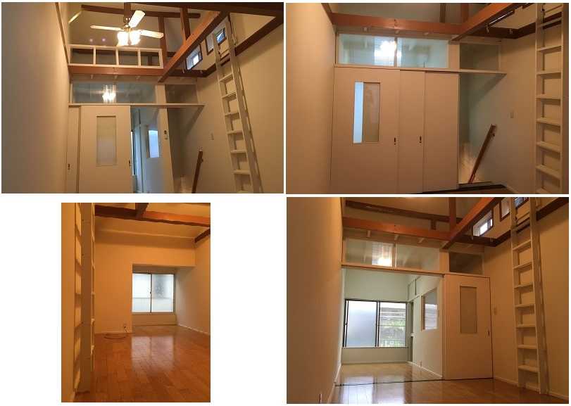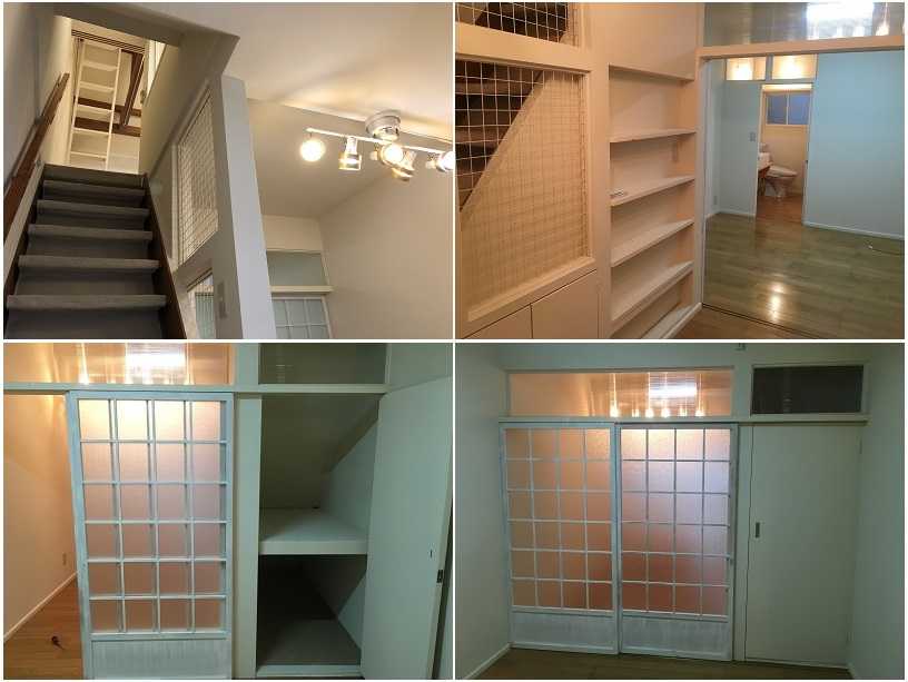 店長親子の 小さい 築古リノベーション を紹介。傷んだ基礎を作りなおし、朽ちた柱を交換したり変色していた砂壁を落としたりといつもながらの大騒動なリフォームでした(苦笑)屋根の瓦 親子で苦心しながら見た目より雨漏りを完ぺきに(笑)ベランダは透明紫外線カットの波板も美しい玄関先も凝ってしまいました(*^^*)狭いながらも せめてキッチンにはホワイトタイルと おしゃれ照明を ^^ 階段は暗かったので壁をくり抜きホワイト金網 アートフックに(^-^*)/アクリル板の2枚の障子は 階段下の収納扉側に納まるのでスッキリ階段は古さ隠しのカーペット少しでも明るくと鴨居をアクリル板に2階でも 少しでも広く見えるように3枚の引き戸も自由に移動 階段側に集めると広々した感じに。ロフトを使う時はハシゴを移動して使います。天井を抜いて ロフトと 照明付きシーリングファンを付けました。狭いので脱衣場トイレ洗面所兼用、もちろん水洗トイレに変更お風呂は息子が磨きたおしてピカピカ、落ち着いたタイルを張りました。ベランダが広いので 洗濯機置場を作りました。床も壁も天井も全て めくってしまう大胆リノベーション、いくらDIYでも やりすぎでは?でも 楽しそうでもありました(*^o^*) 現在は また 二人で楽しんでいます ^^