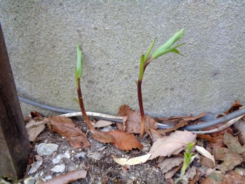 ヤマユリが出てきました。いつものように玄関脇のコンセント近くにです。ヤマユリは夏に花を咲かせます。白くて大きい花、重たいらしく、頭を垂れて咲くんです。だけどここは邪魔なんだけどなぁ~。人気ブログランキング 国内旅行ランキング、113位にアップ、有難う御座います。
