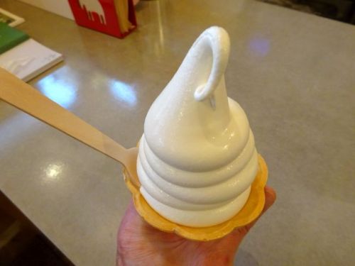 今日は午後から所用を済ませ、一段落したところでソフトクリームが食べたくなり、「ソフトクリームスタンド」でソフトクリームを頂きました。外は寒かったけど、この時期でも美味しいソフトクリームは美味しいですね。「ソフトクリームスタンド」のすぐ隣、「バターのいとこ」ではお菓子の「バターのいとこ」を頂きました。バターは牛乳から5%しか採れない。その残りのほとんど(90%)が無脂肪乳。その無脂肪乳を主原料にして作られたのがこの「バターのいとこ」なんだそうです。素晴らしい発想ですね。生地も柔らかく、バターの風味が良い。もうちょっと甘さ控えめだと甘いのが苦手な私には嬉しいですが、女子にはたまらないようです。人気ブログランキング 国内旅行ランキング、91位にダウン、応援お願いします。