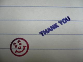スタンプシリーズ 第2弾納品書や領収書に押す「THANK YOU」印硬い感じのする伝票関係に、これを押すと感謝の気持ちと和やかな気持ちが伝わるかなまだいろいろあったけど、アメリカのオフィスデポにお値打ち(USAでは普通)にあるので、次回は別の方法で入手にチャレンジです新しいものを手に入れると、生活や仕事にメリハリがつき、またバリバリやる気になりますDesk Depot・・・輸入文具や小物(なかなか手に入りにくいレアで楽しいもの)が 豊富にあり、重宝します オーナーの応対も良く、たびたび電話で話しますが、 感性がいい方で、会ってみたくなります