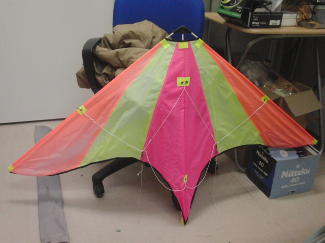 クアッドコプターやArduPlaneを飛ばそうと思っても風が強くて飛ばせない日が多いです.ならばアレ・・・ということで,青春時代に遊んだ安物スポーツカイトを引っ張り出してきました.残念ながら今日は雨.