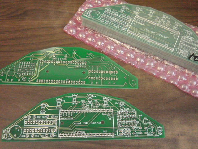これまで紹介したmbedロボトレーサは,学内の教育利用が主目的で基板設計をしたのですが,余分に作っておいたので枚数限定で無料配布します.公費で作ったので以下の条件で.1)アンケートに回答と簡単な製作レポートとください.2)マイクロマウス全国大会または地区大会でロボトレース競技に出場を推奨します. (今年は九州地区大会でもロボトレース競技を行います)3)応募多数の場合は九州内優先4)教育利用目的の方を優先させてください今のところ5枚限定.(学内利用枚数が確定したらもう少し増やせるかも)教育目的で枚数が欲しい方は別途ご相談ください.締め切りは6月いっぱいで基板がなくなるまで.組み立て方と部品リストは基板と一緒に配布します.簡単なサンプルプログラムは公開します.簡単な解説も書きましたこの動画程度のサンプル→ 秋月電子通商のステッピングモータで組立可参考動画→ モータを変えればプログラム次第で速くなります応募は,こちらに記載のメールアドレスまで.希望の方の氏名・送り先などご連絡ください.
