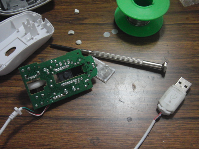 コンパクトで持ち運びに便利でお気に入りのマウスが壊れた.壊れたといっても,根本で断線しただけなので,被覆を剥いてハンダ付け.分解↓ハンダ付け↓最後はホットボンドで補修↓所要時間15分,1000円ちょっとで買ったマウスなので,人件費(自分の)を考えたら微妙.修理して動くようになるのも嬉しいので良しとしましょう.と思ったらコジマで380円↓ 人件費的には赤字ですね.合計5,000円以上で日本全国送料無料!更に代引き手数料も無料。【ポイント2倍】バッファロー USB接続 有線光学式マウス Sサイズ BSMOU05SWH <ホワイト>