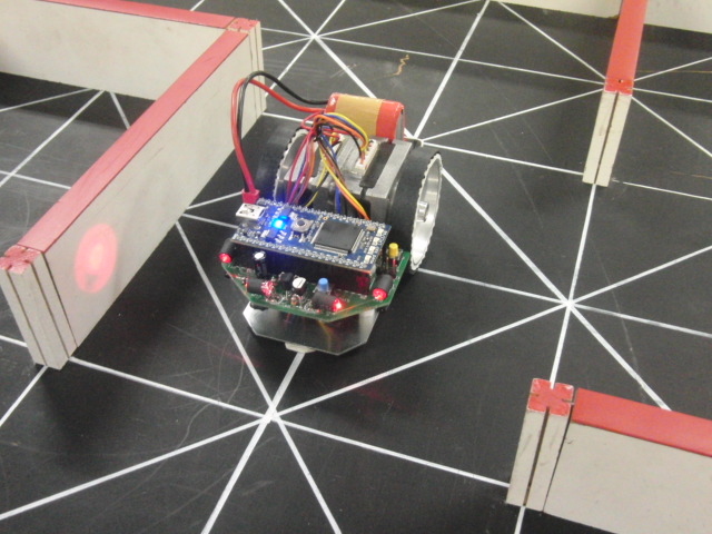 これを迷路で走れるように調整中.といってもサンプルとして公開している簡単な2段階速度調整による走行プログラムですが,小さい迷路ならなんとか走れます.その動画→ mbedMicromouse v2mbedのサンプルは以下のURLで.http://mbed.org/users/hayama/code/mbedMicromouse/