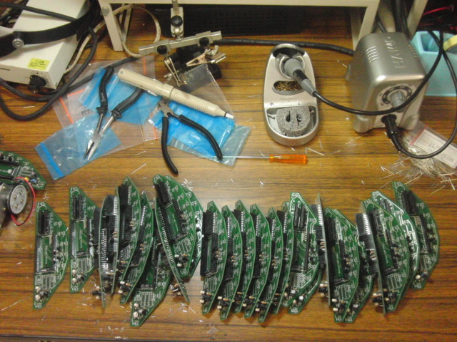 間が開いてたけどハンダ付け作業再開.これだけ作らないといけないとなると工作好きの私でも苦痛でした.学校の演習で使います.