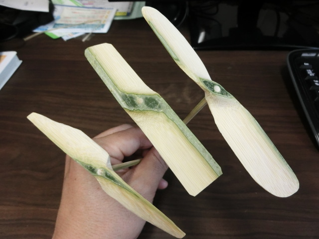 竹とんぼを3種類削ってみました。真ん中はノーマルな竹とんぼ、ちょっと短いけど。中央付近は効率が悪いので強度を保って削りこんでモーメントを大きくしたのが右。動力で回すプロペラは中央の強度が必要なので左の形。もちろん一番右が良く飛びます。左はすぐに失速。竹とんぼ緑【ご注文単位20個でお願いします】【民芸おもちゃ】【おもちゃ】【縁日】【お祭り】【イベント】【景品】【子供会】竹とんぼ緑【ご注文単位20個でお願いします】【民芸おもちゃ】【おもちゃ】【縁日】【お祭り】【イベント】【景品】【子供会】