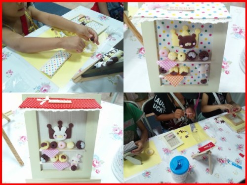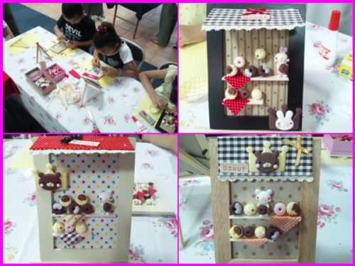 ※お教室や、お出掛けなど色々お伝えしたい事が沢山たまっているのですが、 時間のある時にゆっくり更新させていただきます!!7月20日(土)・21日(日) ハンドメイド☆フェスティバル【大東市アクロス3階ギャラリー】 2日間 <アクロス様主催。販売と体験レッスンを行います明日、明後日、7月20日(土曜日)・21日(日曜日)の2日間、体験レッスンと販売で、craft☆703も参加させていただきます!!毎回とても沢山のお客様に来ていただき、本当に感謝しています。会場のアクロス様にもいつもお世話になっていますので、今回の体験レッスン…超破格のお値段になってます!!!【くまちゃん・うさぎちゃんのドーナツ屋さん】【ミニミニパン屋さん】なんと!!!1個、500円です!!!(ドーナツの額)600円です!!!(パンの額)このお値段では、今後絶対ありません!!2日間限定です!!在庫処分も入っていますので、額の布の色、屋根の色、くまちゃんかうさぎちゃん全て、先着順で選んでいただきます!!なので、希望の色などありましたら、お早めにお越しくださいね☆※来ていただいた順に、順次体験していただくので、 ご予約はたまわっていません。ご了承ください。※今回は配置を楽しんで、自分だけのオリジナルを作っていただきます。 粘土でじっくり制作をご希望の方は…コチラで!! ↓↓↓【私のレストラン】 ※ケース付き約2時間半。アクロスにて。2500円(講師料・材料費込み)7月28日(日曜日)・8月10日(土曜日)開催します。ご予約受付中です!!詳しくはお問い合わせください。明日・明後日の体験レッスン4種類集合~!!皆様との出会いを楽しみに、お待ちしております^^