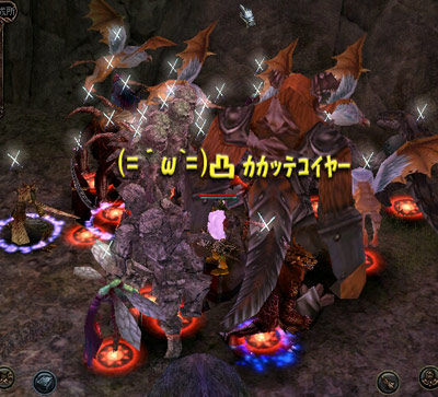 ∩`・◇・)ハイッ!!猫です(≡゚∀゚≡)ニャン先日の日記でにギルド、私個人の目標を赤裸々に書いてみましたが、先日、13日にさっそく挑戦してみました(*^ー゚)bジャキエル ギルハンハイ ジャキハン キタコレ (=´ω`=)参加人数は、ギルメン10人&るなさんファミリー&猫弟子合計13人で挑みました(;´Д`)ハァハァ いちおう、私としては素材ゲットよりもギルハンでジャキを タオシタドーヽ(`Д´)ノという出来事を皆さんと達成したかった。ということです22222サバ落ちや、間違えてフリポ登録を消してしまうというギルメンさんもいましたが。・゚・(ノ∀`)・゚・。人数は減ったものの、私自身は大活躍できたのではないかと思っております|ω・)やはり、日頃はザコ猫ヲリとはいえ、こういった場面、戦闘の場所では、マスターとしての威厳やマスターとしての存在感そういったものをギルメンの皆さんに見せておかねば・・・(;゚∀゚)=3ハァハァ今回は、活躍できたはず1111113(;゚∀゚)=3ハァハァハァハァハァみんな心の中で(猫さん、ステキ(人´∀`).☆.。.:*・゚)(猫さん、(;´Д`)ハァハァ )(猫s・・・(;´Д`)ハァハァ/lァ/lァ/ヽァ/ヽァ ノ \ア ノ \ア )と、思っていたに違いない(ΦωΦ)フフフ…そんな、私が活躍したSSを息をつかせぬ緊張状態の中 撮ってみました(ノ´∀`*)エヘヘ コレね↓ コレ(=´ω`=)q生 贄 か ヾ(゚Д゚ )ォィォィ(;゚∀゚)=3ハァハァみなさーん(=゚ω゚)ノシがんばってー( ´┏_⊃┓`)ノ~ フリフリお供え になっていましたァ '`,、'`,、('∀`) '`,、'`,、しかし!!一瞬の油断が危険を伴うこの状況・・・・しばらくしてPCのモニター を見ると・・・フリーズしてるよ_| ̄|○再起して、インしたわけです(;´Д`)ハァハァ すると、私の替わりにギルメンさんが 贄 となり、 供物 となってくれていたので、すぐに合流し、そのギルメンさんの替わりに遂に私が活躍する時がきたのです!!444444そんな、私が活躍したSSを息をつかせぬ緊張状態の中 撮ってみました(ノ´∀`*)エヘヘ コレね↓ コレ(=´ω`=)q再 度 生 贄 キタ━━━━(゚∀゚)━━━━!!しかもDDが私を見つめてる(。□。;)逆さガビーン!!(;゚∀゚)=3ハァハァ怖いですね(*´д`*)ハァハァしかし、いまの私にできる事なんて、この程度の事くらいですよ (ノ´∀`*)エヘヘまぁ・・・これ以上、面白い内容でもなんでもないですので・・・。しかし、結果的に今のメンバーでのギルハンジャキエル狩りは成功v(´∀`*v)ピースということですな・・・(`ω´)グフフ時間が掛かった割りに、精算不味すぎ という事が難点ですが、未経験だったメンバーが経験する事ができたのは、大きな収穫だったと思います(m´・ω・`)m 強いメンバーが揃いました(´0ノ`*)オーホッホッホ!!愉快なメンバーが揃いましたヾ(*´∀`*)ノキャッキャまた時間があるときはジャキエルを やっつけに行きたいですね(*´σー`)エヘヘ次は私の =ΦwΦ==○)゜O゜) ネコハー゚ンチ! を・・・ (ΦωΦ)フフフ…P.S.♯10が実装されたからといって、特に変わった事はしていませんクロノス城はPS推奨マップになってから1度も行っていませんが、はじまりの町でみなさんPSしておられるようです|ω・)ただでさえマップを把握できていないうえに、狭くてワケがわかりませんΣ(゚Д゚;≡;゚д゚)毎度の事になってしまいましたが、PCの調子が悪いどころか、13日は2時間も起動と再起を繰り返していました・・・。・゚・(ノД`)・゚・。過去最悪な記録です・・・_| ̄|○クロノスが出来ない、という以前に PCが起動途中でフリーズ乙wそんな現実・・・・ヒィー(((゚Д゚)))ガタガタ私個人の目標に、新PCの購入という項目が加わった事は言うまでもありません。・゚・(ノ∀`)・゚・。