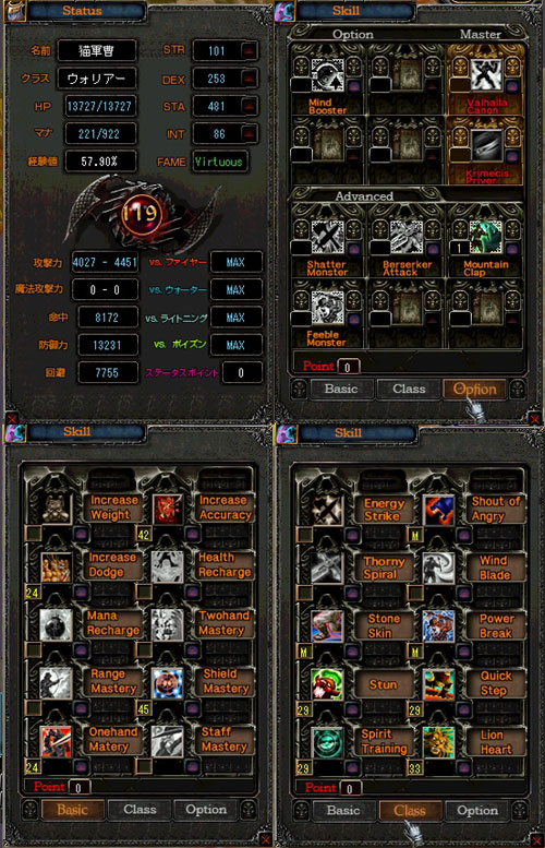 ぬこでs・・(*´Д`)ウゥ・・・今日はアノ・・なんていうか・・・ダウンしてるので、サクッと・・・マンボですね。攻撃スキル無いので狩れません!!3以上。