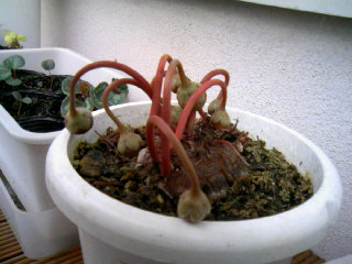 こちらは1年と少し前の春(2007年の2、3月ころ?)に、安売りされてたシクラメンさん。