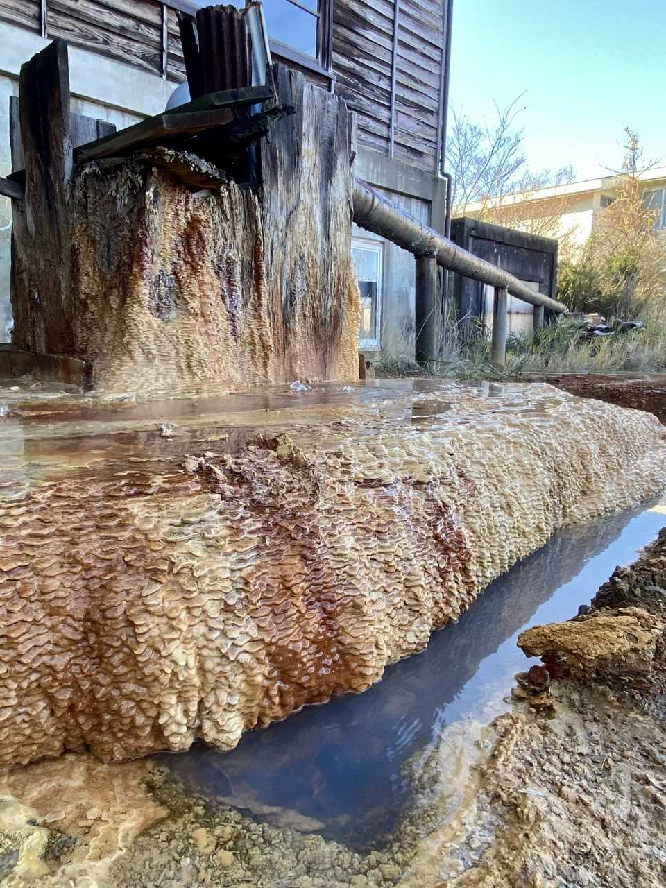 凄い見た目ですね🧟♂️ここは温泉が趣味のお友達にオススメされた『最近行って一番良かった温泉♨️です。この日もまた夜明け前に出発です。関越自動車道から上信越道に進みますが、軽井沢辺りがすごく寒く気温計が-3度でした。グリップヒーターで手はなんとか寒くはありませんでしたが、太ももの上が寒かったです😱長野ICからは近く、料金も400円とお手頃⭕ここは、初めて行くと湯守の説明があります。『外湯 39℃と40℃内湯 41℃ 加水、加温なし内湯は上の方からは入らず、下の方から入る』ここの内湯は湯船が細長くお湯が出ている方から入るなということなので、当たり前のことをとはいえ改めて言われると少し身が引き締まります👍ここが外湯です。入っている人がいたので写真は撮れませんが本当に茶褐色です❣️本当に良く温まりました👍湯冷しをして来た道を戻るか、中央道に抜けるか!結局、中央道へ進むことに🏍️上の写真は、白樺湖です。冬の白樺湖は寂しいですね😔原村のあたりは天気が良くて遠くの八ヶ岳がくっきり見えました⭕️こんな感じで反時計回りでツーリングしました🏍️