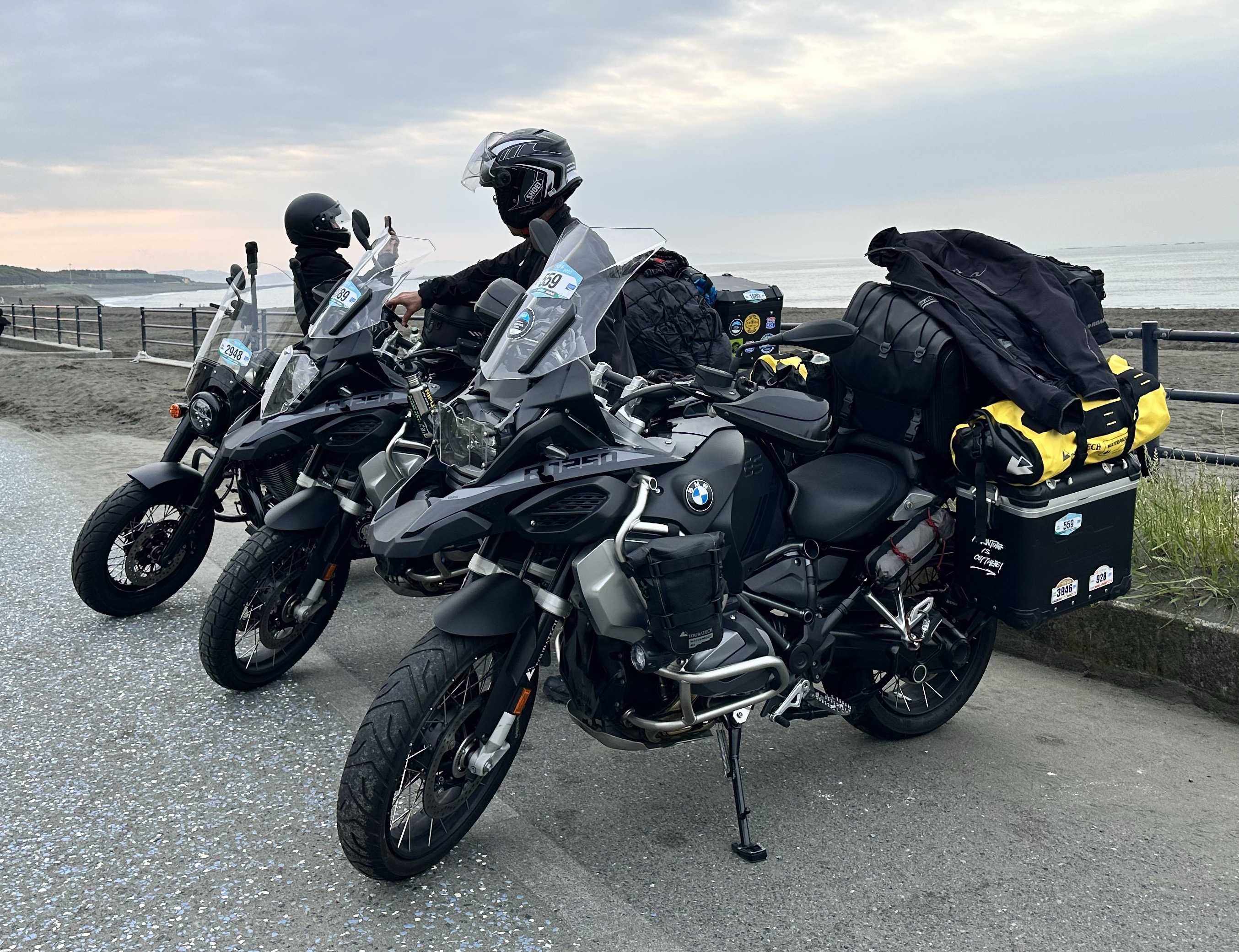 今年3回目のSSTRに参加致しました‼️年々盛り上がるSSTR🏍今回は7台で茅ヶ崎サザンビーチ⛱を出発し、富士五湖を抜け中部横断道の六郷ICから高速に乗りました。安曇野ICで降り糸魚川まで一般道、そして北陸自動車道を経由し千里浜なぎさドライブウェイにゴールしました❣️道中、北陸自動車道に入った辺りから豪雨に見舞われましたが、無事ゴール🥅残念ながら夕陽は見れませんでした💦1日の走行距離が自宅からサザンビーチを含めると570km⁉️と中々の距離でしたが、GSだとまだまだ行けそうでした😊