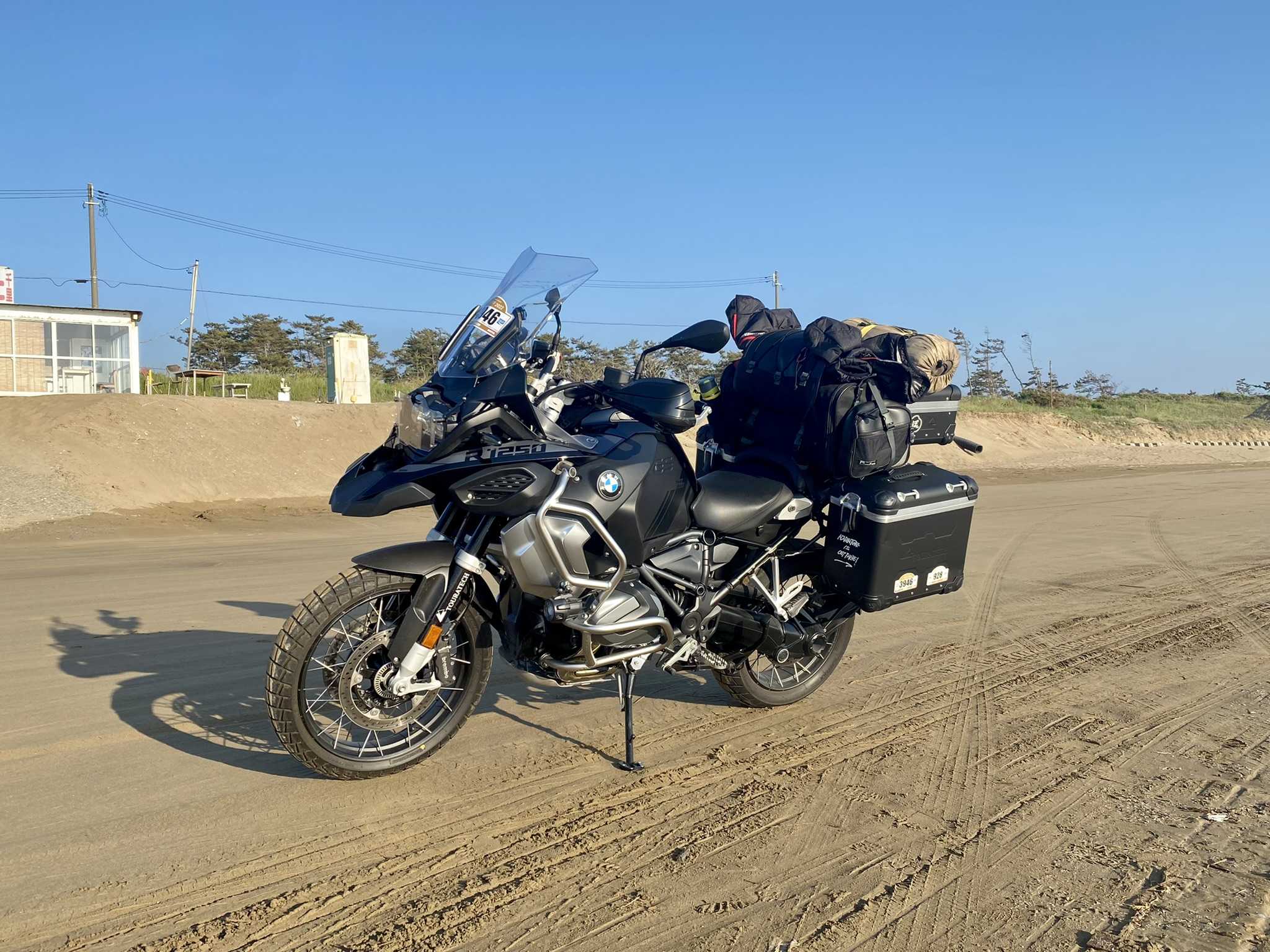 2021年が初めてのSSTR参加です🏍️申込をしてゼッケンが届いた時は何故か凄い嬉しく、当日の妄想が膨らみました🧐学生時代の修学旅行みたいですね❣️嬉しくて、早速シールドにゼッケンを貼りました👍予行練習で夜明け前にサザンビーチ⛱️に到着‼️SSTRはタイムを競うものでなく、全国の参加者が自分で計画を立て❗️日の出に太平洋側の海岸を出発し、日の入りまでに千里浜海岸に到着すると言うとても面白いイベントです👍ソロで参加する人もたくさんいると思いますが、私は2021年は後輩と2台での参加でした😊本当は、もう1台参加予定だったのですが、なんとSSTRの1週間前に交差点で車がバックしてきて逆突されてしまい泣く泣く不参加となりました💦出発までのルート決めであーでもない、こーでもないと打ち合わせしている時からもうSSTRが始まってます🏍️