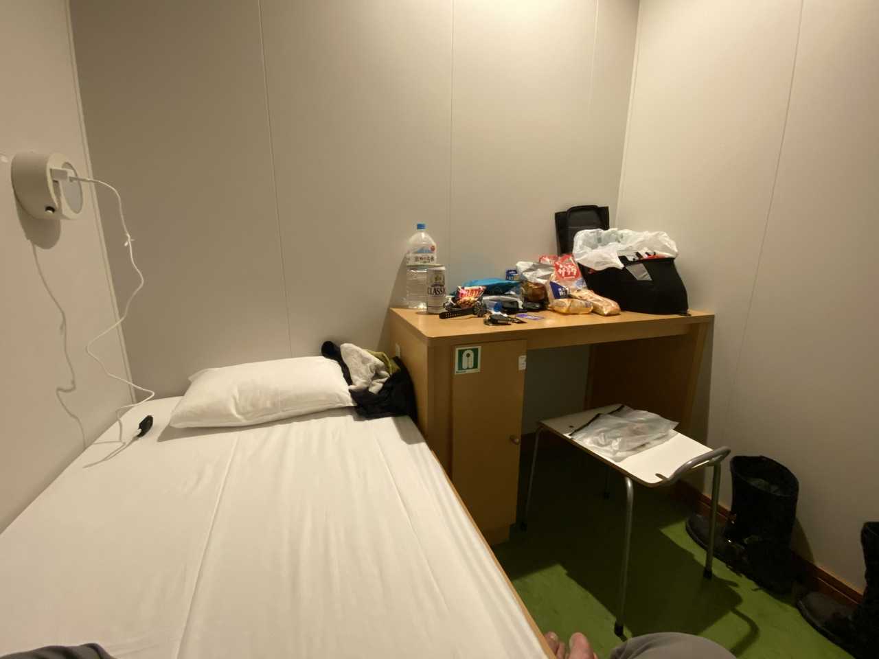 フェリーの個室ですが、男の一人暮らしみたいに汚くて嫌ですね〜💦