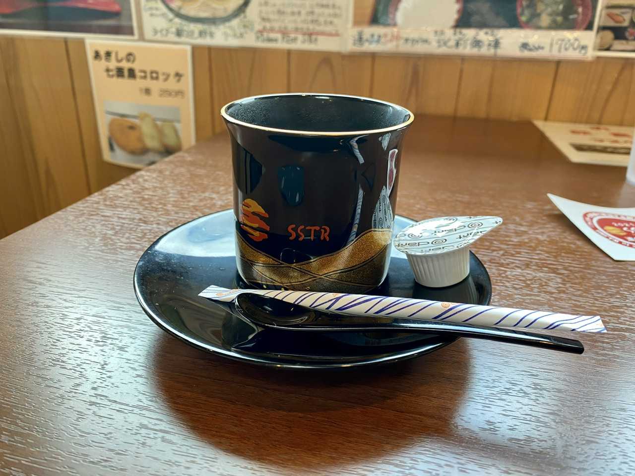 道の駅赤神にて、輪島塗りのコーヒーカップ☕️でコーヒーの無料サービス❤️(SSTRライダー限定)