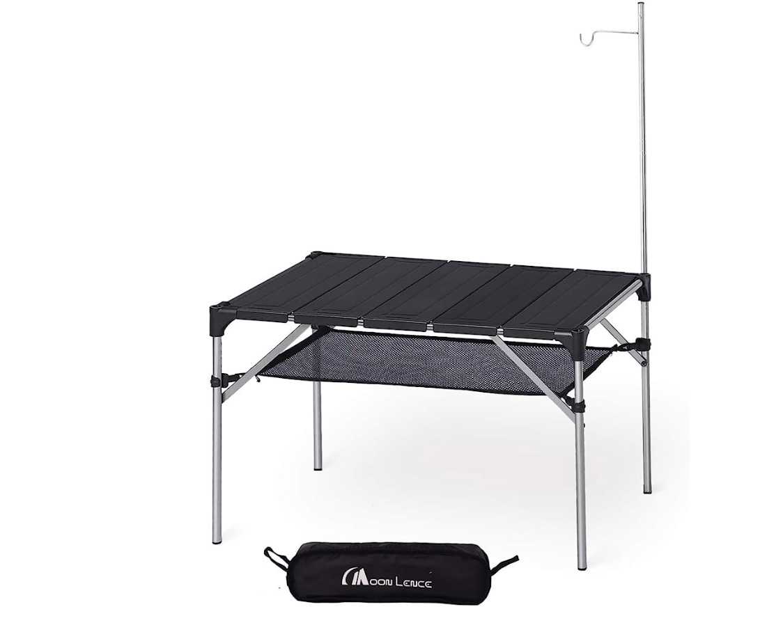 軽くてコンパクトなので取り敢えず入れておけば、必要な時組み立てて使えるのがメリットですが、地面が斜めだったり、一回設置したパニアとテーブルセットを動かす、または夜テントの前室にしまう時などは、少し手間です😰