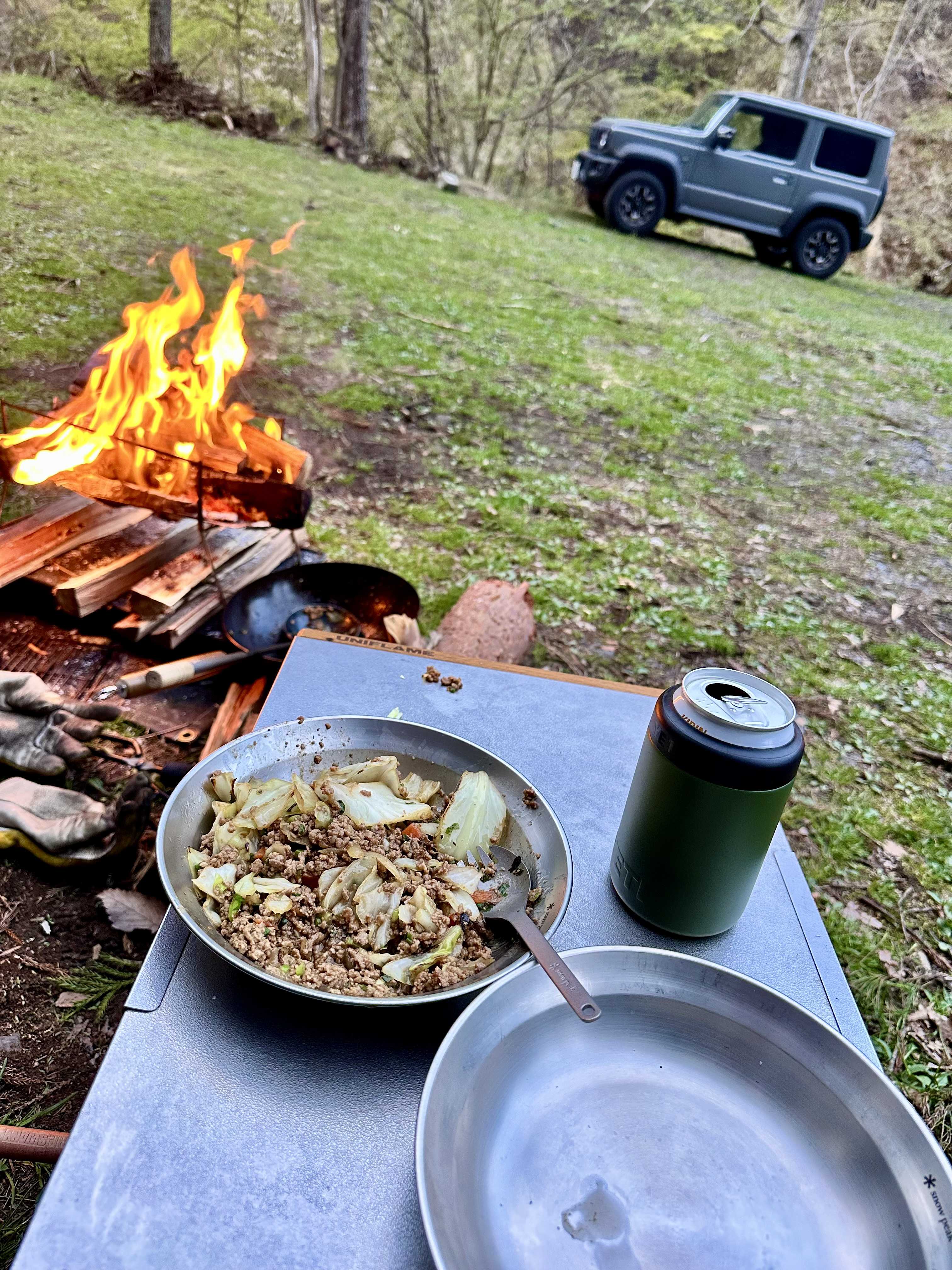 キャンプ場に戻って、まずは乾いた喉にビール🍺