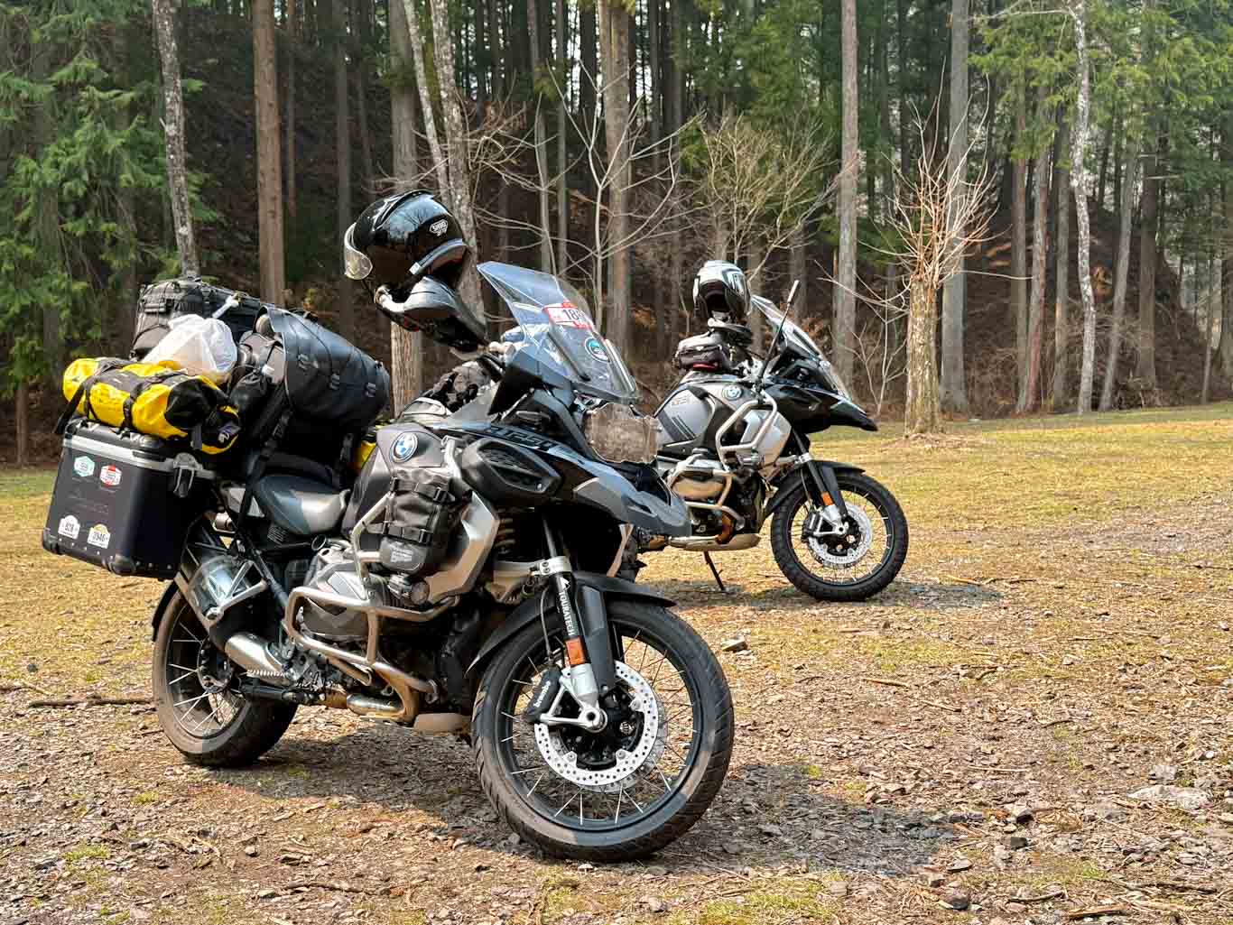 1時間くらい走り、買い出しのスーパーに立ち寄り・買い物をしました。お酒や食べ物が加わり、さらに積載量が増えました😰