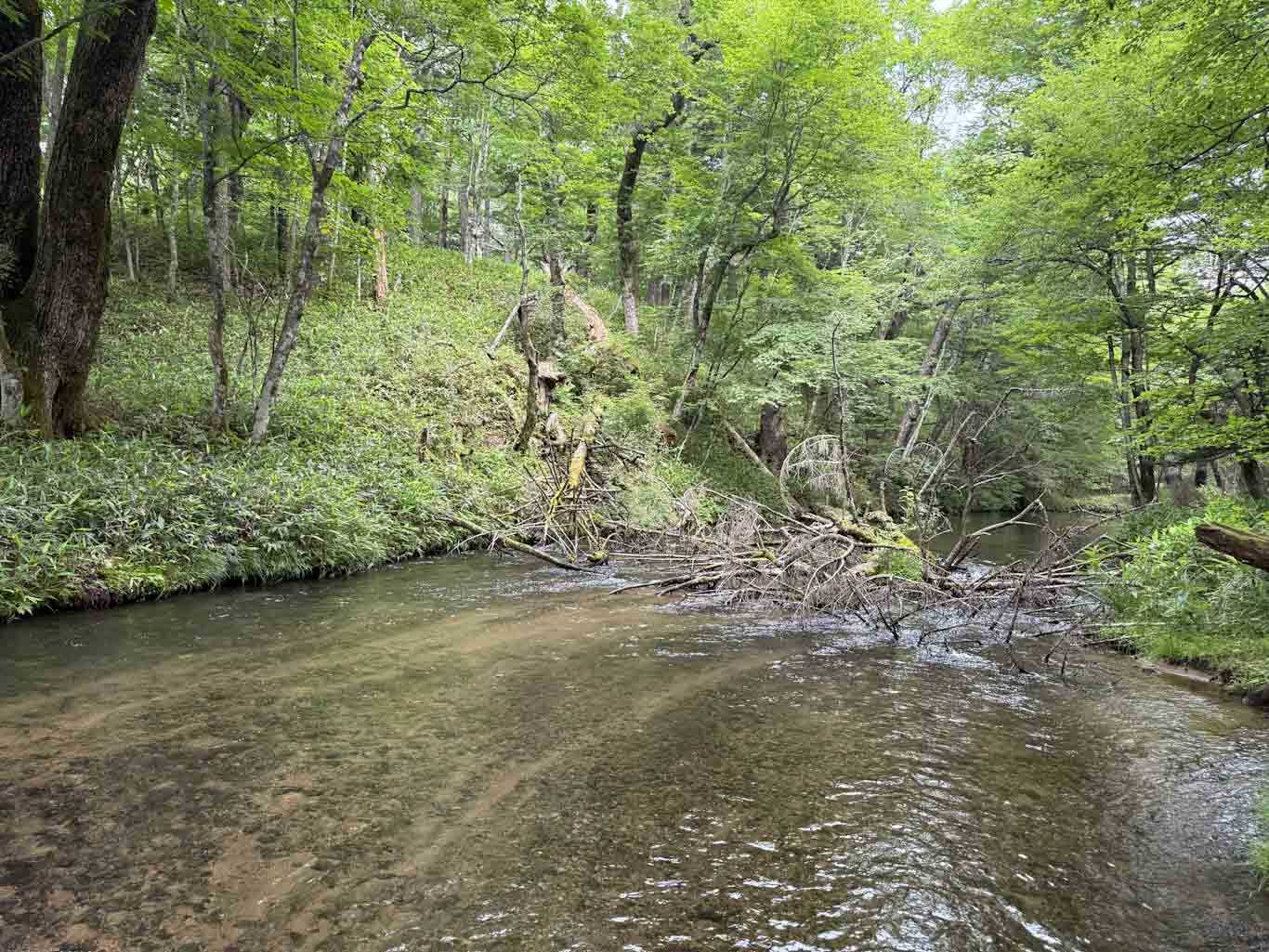 事前情報だとルアーは特に厳しいのことでしたが、覚えたてのフライでこの倒木だらけの湯川で引っかけまくるより良いかなぁと思い、ルアーで挑みました🫡