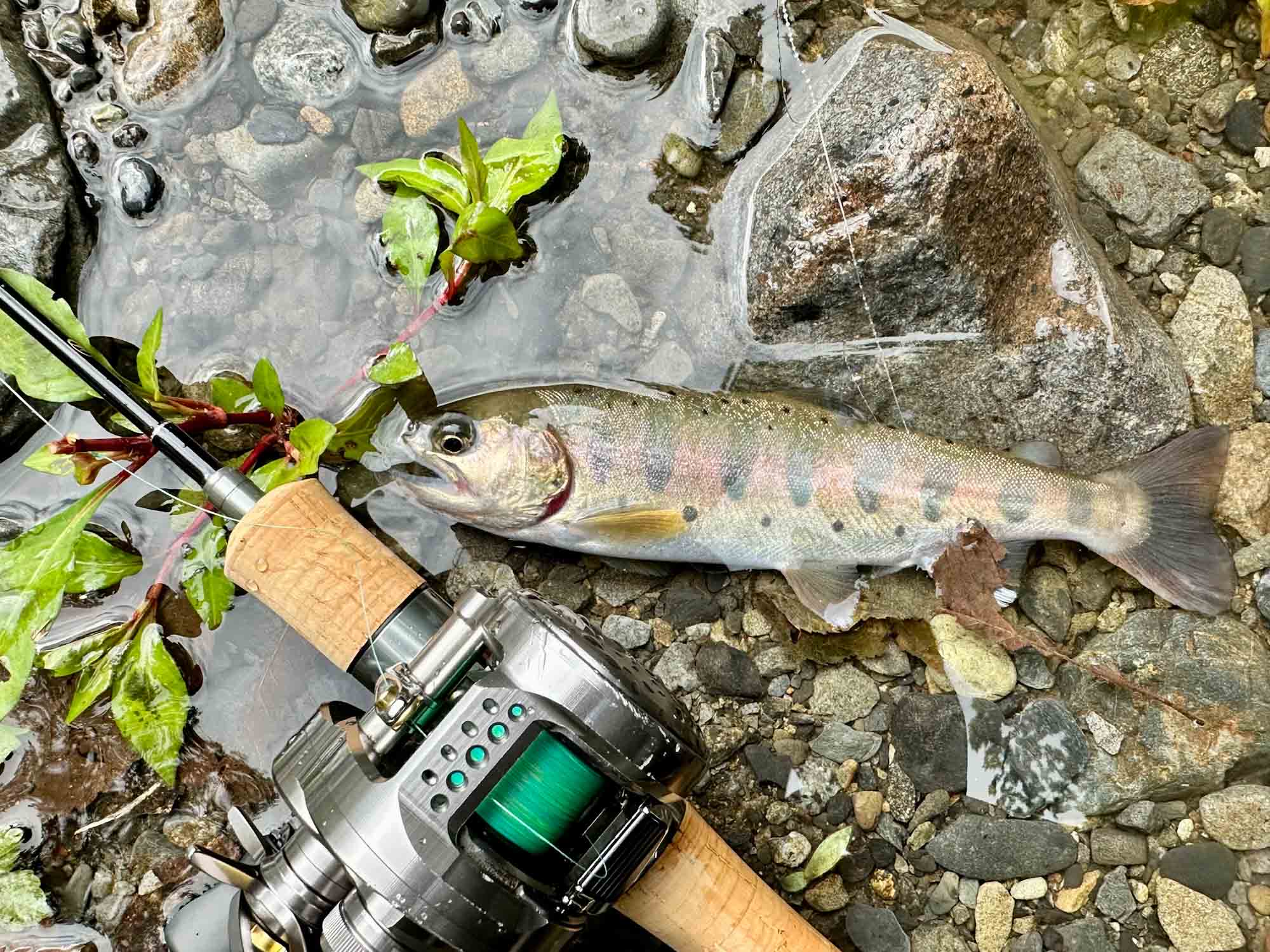 初ヒットからは、半年間‼️突っ走りました👍暇があれば、ホームに通いました(イワナ、ヤマメ、ニジマス)長野 残念ながらボウズ北海道(ニジマス、オショロコマ、イワナ)日光湯川(ブルックトラウト・ニジマス)そして最後に新潟と(イワナ37cm)あと、やっぱり私にはスピニングは向いていないようでネイティブの釣りは全てベイトです。それと基本的にPEにリーダーですが、師匠からはナイロン10lbの方が良いと毎回言われてます。PEでテンション張ってない時に風でグシャグシャになった時はやはりナイロンかな⁉️投げたはずのルアーが左肩に引っかかって大バックラッシュなんて時はスピニングだったらなぁと思う時もあります。でも、ベイト特有の弾丸でカバーに打ち込んだときの気持ちよさがあるので、やはり私はベイトが好きです❤️さぁー!この半年の最終釣行は、釣り人憧れの奥只見です。銀山湖と言った方が良いですかね🆗夢の2尺イワナが釣れたらなぁと、ここ毎日妄想してます😊初めて行って、トローリングもしなくて釣れるなんてそんな都合の良い話はあるはずがないと思いつつ、頭の片隅に奇跡のイワナを企んで仕事頑張ってます🫡