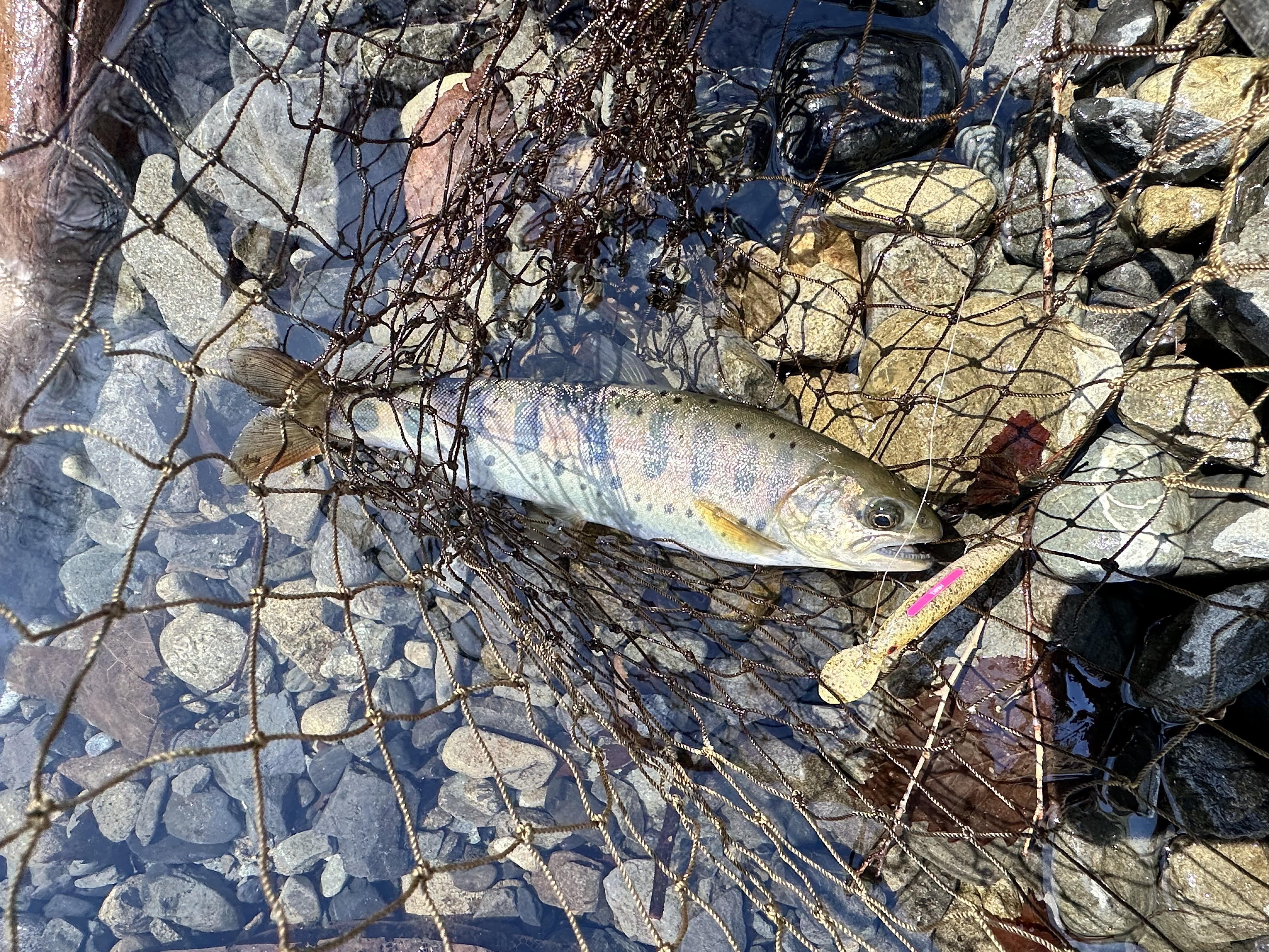 年券は2つの川を買いました。2つの川はいずれも同じ湖に流れ込む川です。結果としては、川幅の狭い方の川に通うことになりました👍(たまにはもう一つの川にも行きますが)その川は、ニジマス、イワナ、ヤマメが釣れます。正確に言うと居るけど、私にはなかなか釣れませんでした😱そしてこの川に通うようになったのは、源流・CR・ストリームタイプの管釣りが一つの川にあるからです。解禁直後からほぼ毎週通いました👍CRや源流で釣れない時は、近くにあるストリームタイプ(川を堰き止めて漁場を作るタイプ)で釣る練習をしました。なんとなくルアー釣りがわかるようになってくると、管釣りとネイティブの釣りでは多少なりに違いがあるとわかってきました🧐管釣りを否定する気はありませんが、私が管釣りにハマらなかったのは、人気のある管釣り場は『人と人との間隔が近すぎる』からです🤢(この川の管理釣り場ではないです)明らかに自分の中のこれ以上近づかれたら不快という距離に後から来て入ってきます。さすがに『ここ良いですか?』と書かれて『嫌です』とは言えません😱(小心者)そして、そこまで近くに入られると、もう真っ直ぐしか投げれません。決まって、大体後から入ってきた人の方が上手く横でバンバン釣られます😱かなりの頻度で高級リールのドラグ音が鳴り響くからです。(高いリール買えない)この繰り返しで、管釣りに足が遠のいてしまいました😢(もちろん空いてる管釣りや時間もありますし、なんと言っても家から近いのが便利なのですが)ネイティブだって良いことばかりではありません💦 *そこに魚がいるかわからない *いても釣れるかわからない(これは腕の問題) *大きい台風が来れば地形そのものすら、変わってしまう *大体家から遠い逆に良いところは、 *大体誰もいない👍(平日) *魚の引きが強い *景色そのものが綺麗 ※コストが安いと言う感じかな。ところで、解禁の4日後に初めて川で釣れました😊初めて釣れたのはヤマメですが、川のプールで管釣り用のルアー(HKMLのザッカー)を投げたら釣れました🎣今からすれば写真の撮り方もイマイチですね😢