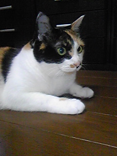 今日の福岡は、久しぶりの「猛暑」でした。 通風のよいTシャツで、日中過ごしましたが、「黒」は暑い…(笑) 毛皮のミミにゃんは、大変だね♪