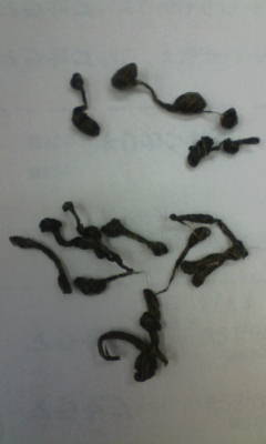 このうんちは、だれのウンチだと思いますか??答えは、うさぎさんです。皆さんのイメージでは、丸い粒々、コロコロではないかと思いますが、様々な理由でウンチの形がこのように変化することがあります。原因の代表的なものが「毛球症」です。うんちのつながっている部分が主に、グルーミングのときに飲み込んだ毛でできているのです。皆さんのうさぎさんのウンチの形がこのように変わってきたら要注意です!!お近くの病院に行って、見ていただいてくださいね。。