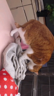 写真はまりつこさんがスタッフのセーターをかじってはフミフミかじってはフミフミしているところを隠し撮りしたものです(笑)