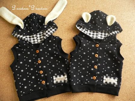 雪の結晶柄のキルトニットで、娘たちに ウサ&クマ耳フードベスト を作りました。 お姉ちゃんが、うさぎちゃん♪ 妹ちゃんが、くまちゃん♪ タグはC&Sさんの、フランス語タグ。(fait par maman…ママの手作り / Le café Français…フランスのカフェ) とっても可愛く出来て、大満足です♪ お揃いで着せたら、めちゃめちゃ可愛いだろうな*^^* ・・・ 追伸 ・・・いつの間にか20000アクセス達成していました~。いつも遊びに来てくださる皆さん、初めてお越しくださった方々も、どうもありがとう^^ 感謝感謝です。そして、これからもどうぞ宜しくお願いしまーす♪ ランキングに参加しています。 一気に下落しちゃいました~><。・* エーン「ぽちっ」 と1クリックしていただけると、とっても励みになります**↓↓↓ ☆・・ キルトニット色々 ・・☆