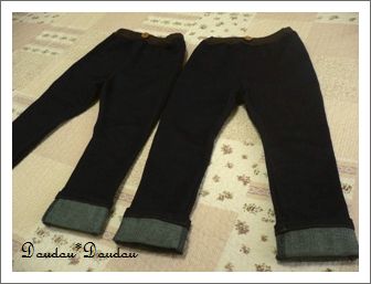 雨の日の撮影で画像がとっても悪いのですが・・・今度は、娘たちのスキニースパッツを作りました。 パターンはいつもヤフオクでお世話になっているhashimaroさん(★)のもの** 前後分かりやすくする為に、前にココナッツボタンを縫い付けました。一応、縫い糸は赤とピンクで色違いに。。。それ以外は何も工夫することなく・・・どんなトップスにも合わせ易いよう、極々シンプルに仕上げました。 100サイズのパターンで、2人にはちょっと大きめ(長め)なのでしばらくは、裾を三つ折にして履かせる予定です^^ ランキングに参加しています。 「ぽちっ」 としていただけると、とっても励みになります**↓ ↓ ↓